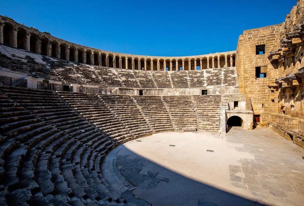 The Aspendos Theatre is globally renowned for its incredible acoustics. Even without modern amplification systems, a performer on the stage can be heard clearly by spectators seated in the uppermost rows. This acoustic brilliance is achieved through the precise alignment of the theatre’s design elements, including the curvature of the seating area, the height of the stage building, and the placement of the orchestra.