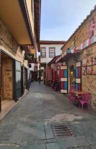Stepping through Hadrian’s Gate brings you directly into Kaleiçi, Antalya’s charming old quarter. This area is a maze of narrow, cobblestone streets lined with Ottoman-era houses, boutique hotels, artisan shops, and lively cafes. The contrast between the classical Roman gate and the vibrant, lived-in energy of the old town creates a unique experience for visitors.