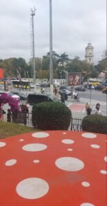 The area is also dotted with green spaces, providing a respite from the city’s hustle and bustle. Benches and shaded spots invite visitors to sit and soak in the tranquil atmosphere while watching the lively activity around the square.