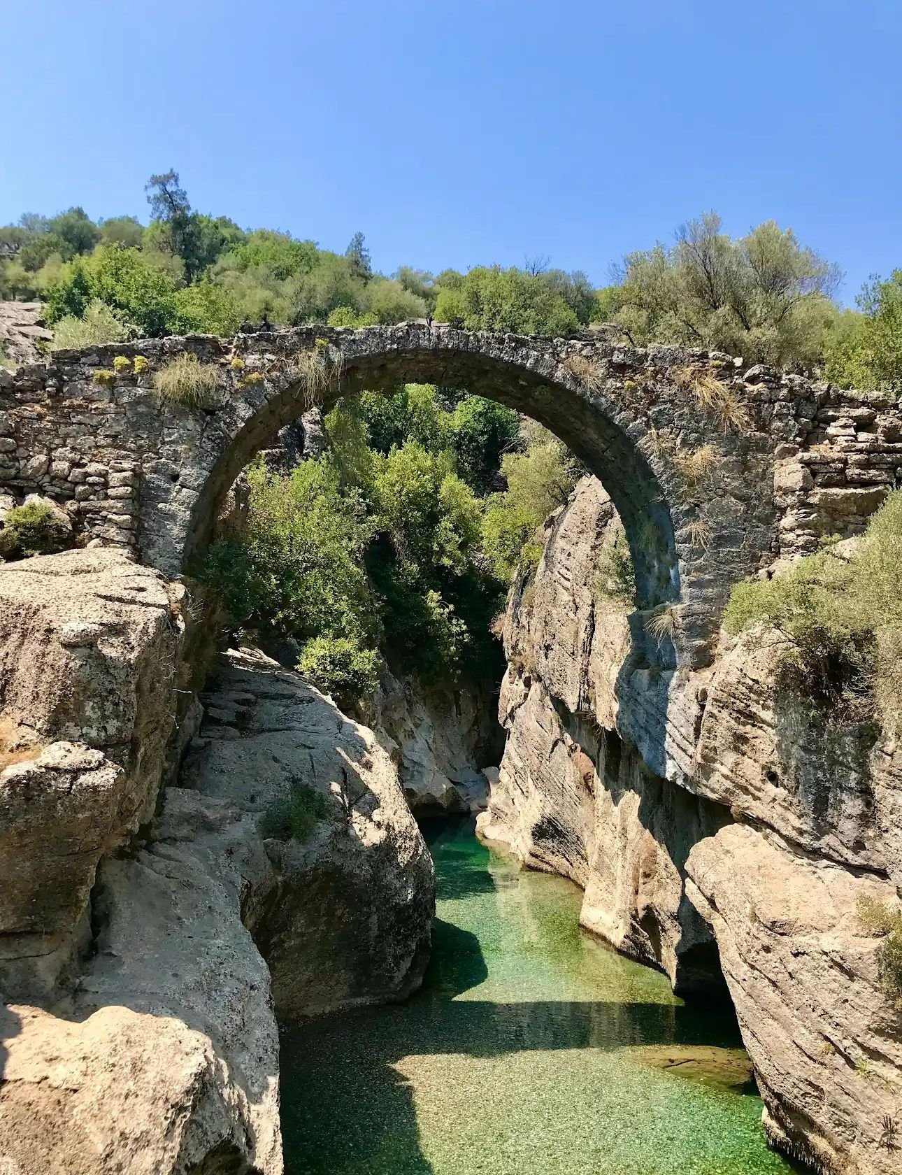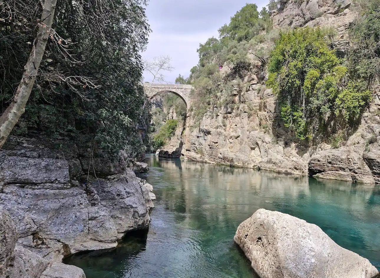 Köprülü Canyon is not just about nature and adventure; it’s also steeped in history. One of the most iconic features of the park is the ancient Roman Oluk Bridge (Oluk Köprü), which arches gracefully over the canyon and still stands strong after nearly two millennia. Built in the 2nd century AD, this stone bridge is a marvel of Roman engineering and provides a unique link between the natural world and human history.