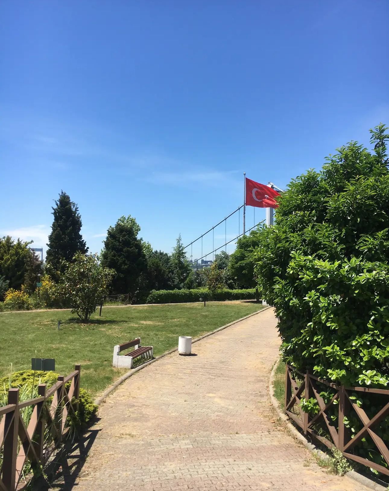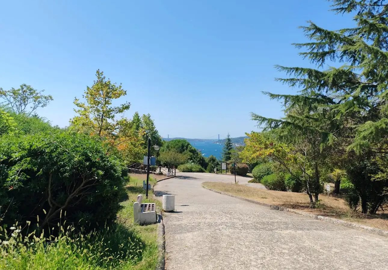 The grove's elevated position provides an unrivaled panoramic view of the Bosphorus, the Fatih Sultan Mehmet Bridge (also known as the Second Bosphorus Bridge), and the Asian and European sides of Istanbul. On clear days, the sight extends far into the distance, offering a postcard-perfect image of Istanbul's sprawling cityscape juxtaposed with the shimmering waters of the Bosphorus.